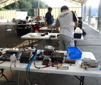充電テーブル(充電は指定場所で行われる) 恒例のピットで「おにぎり」
